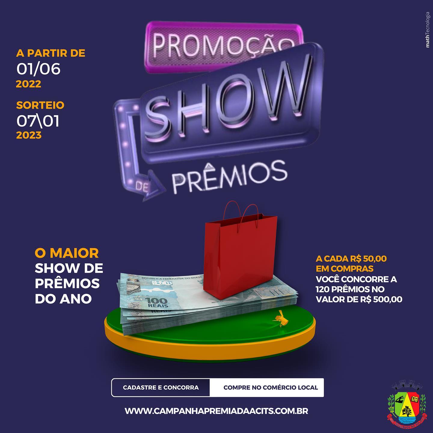 A Campanha comprar no Comércio Local dá Show de Prêmios é promovida pela ACITS Associação Comercial e Industrial de Taquaruçu do Sul, e Prefeitura Municipal de Taquaruçu do Sul.A campanha terá efeito para as compras realizadas nos períodos de 01 de Junho a 31 de dezembro de 2022.