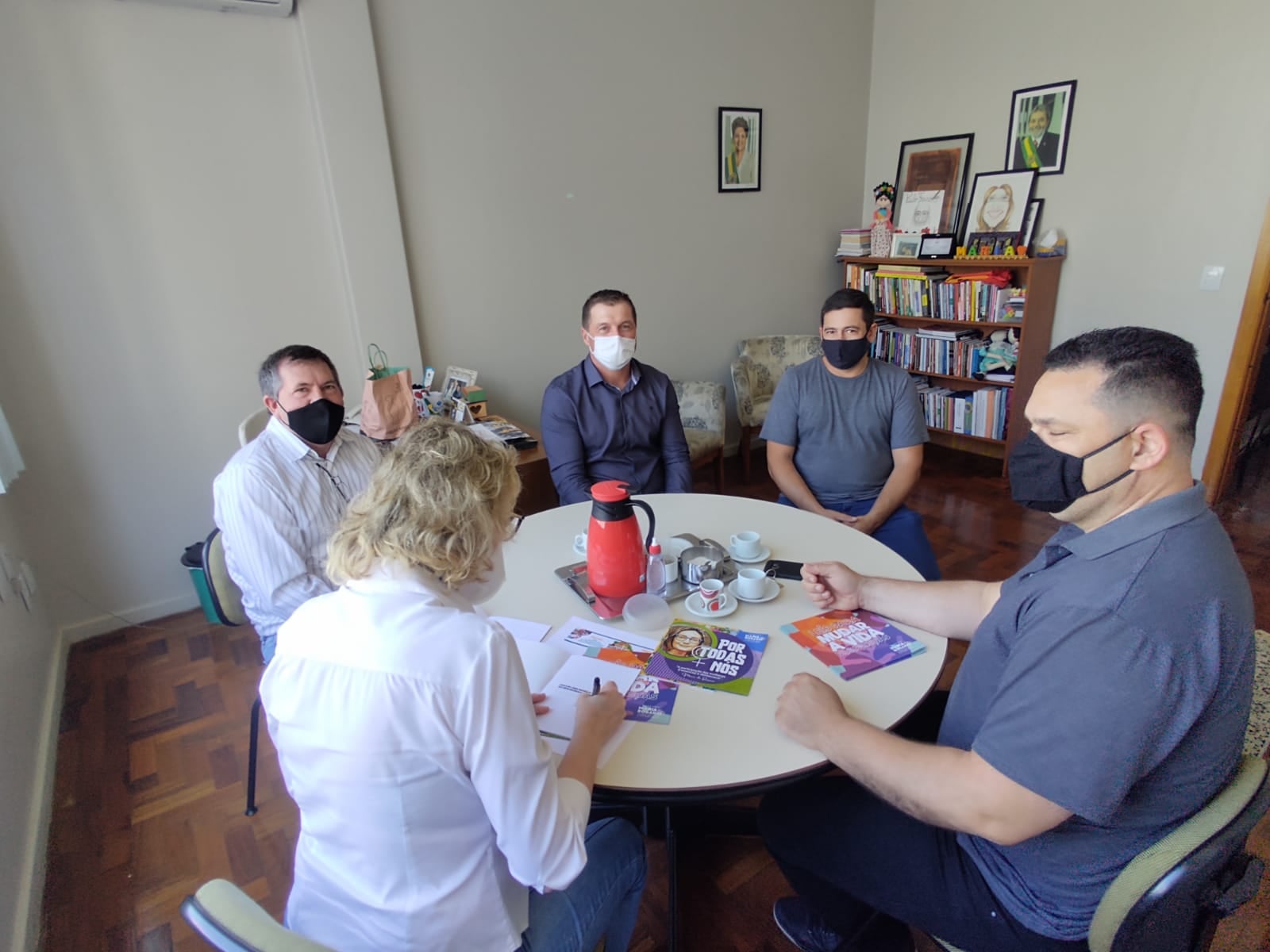 Por fim, a agenda foi concluída no gabinete do Deputado Estadual, Elton Weber, com a finalidade de divulgar e convidar o deputado para conhecer a Feira da Agricultura Familiar, que acontece mensalmente no munícipio, ainda, foi solicitado o envio de recursos ao município e a destinação de novos maquinários para comtemplar as patrulhas agrícolas.