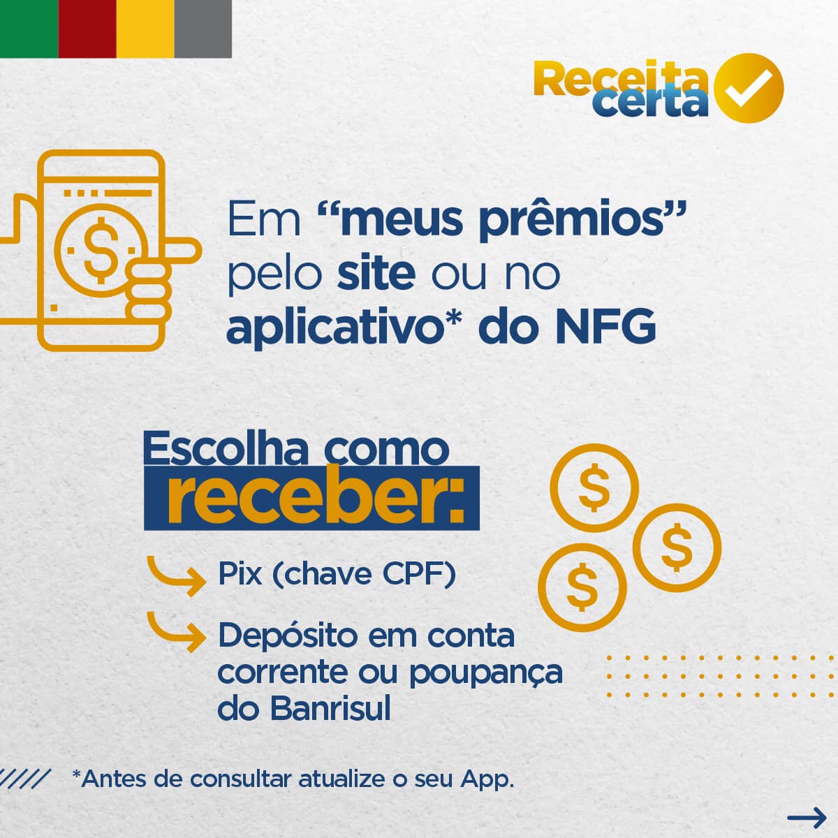 Solicite o resgate em meus prêmios pelo site ou no aplicativo do NFG (atualize o app).
