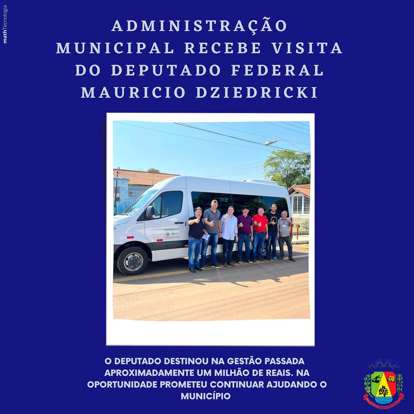 Na última quarta-feira, 23/02/2022, recebemos a visita do Deputado Federal Mauricio Diziedrick, que na gestão passada destinou aproximadamente um milhão de reais para o nosso Munícipio, onde foi adquirida a van para transporte de pacientes, salas de aula da creche, recuperação de estradas e calçamento na linha Sete de Setembro. .