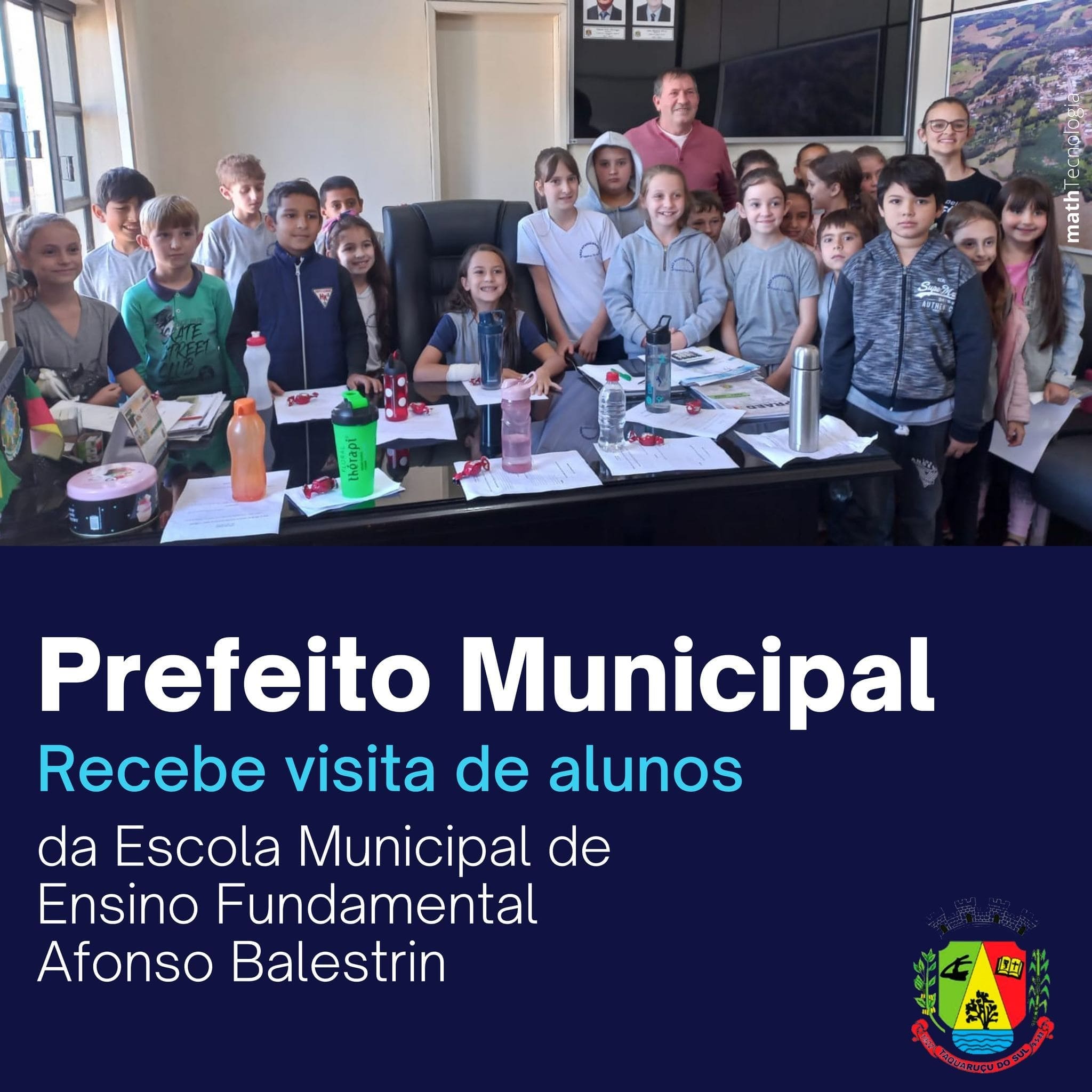 No último dia 06, o Prefeito Municipal, Luiz Blanco Alves, recebeu visita dos alunos do 4º ano da Escola Municipal de Ensino Fundamental Afonso Balestrin, acompanhados da professora Susana.