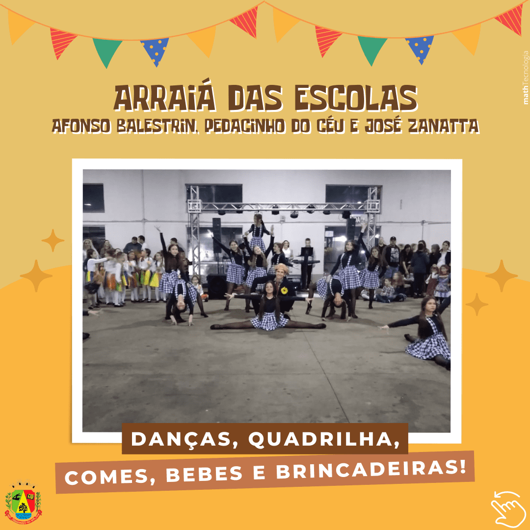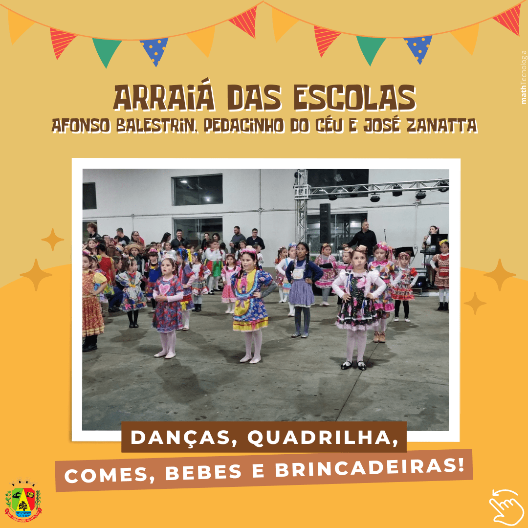 Na última sexta-feira, dia 24, dia de São João Batista - O Santo Festeiro - as Escolas Municipais Afonso Balestrin e Pedacinho do Céu, juntamente com a Escola Estadual José Zanatta realizaram a tradicional Festa Junina das Escolas. Centenas de pessoas se fizeram presentes no Salão Paroquial, para os festejos juninos e o Arraiá foi muito animado.Houve apresentações dos grupos de dança do projeto Vem Dançar de Taquaruçu do Sul e dos grupos de Palmitinho e Vista Alegre, coordenados pelo Professor Danilo de Gregori, além da tradicional Quadrilha que teve como noiva a Professora Sibele e como noivo o professor Danilo. Após as apresentações dos alunos, que animaram os presentes, as crianças puderam se divertir com as brincadeiras típicas como a pescaria, o jogo das argolas e a boca do palhaço e se deliciar com as comidas e bebidas típicas da data.