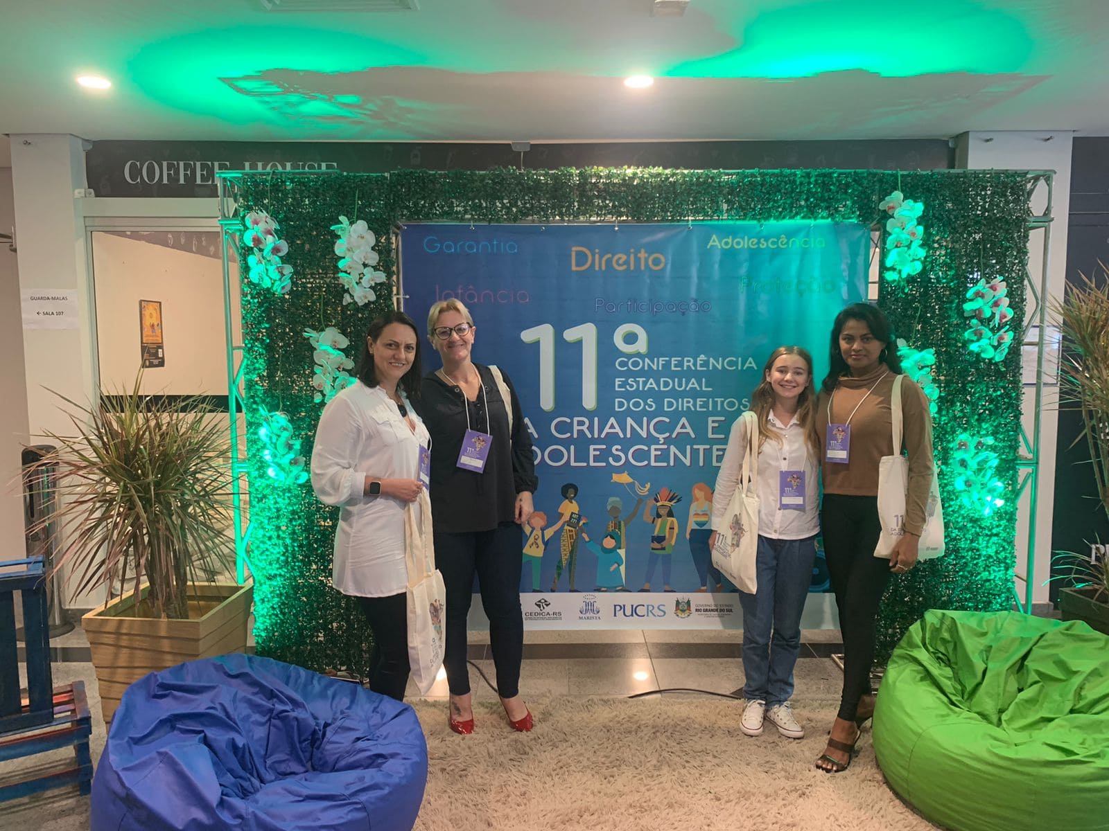 Entre os dias 08 e 11 de maio, aconteceu em Porto Alegre a 11ª Conferência Estadual dos Direitos da Criança e do Adolescente, que abordou os impactos que a pandemia de covid-19 gerou no processo de desenvolvimento das crianças, dos adolescentes e de suas famílias, com a construção de propostas de ações e políticas públicas que garantam os seus direitos no contexto pandêmico e pós-pandemia.Estiveram presentes como Delegadas Municipais na Conferência Estadual Karine Zanatta e Grasiela Cadoná Lunardi, representando o Conselho Municipal dos Direitos da Criança e do Adolescente; Natalia Dias da Silva, representando o Conselho Tutelar e demais entidades da sociedade civil e Lorenza Luza, representando os adolescentes do Município. As delegadas foram eleitas por ocasião da 1ª Conferência Municipal dos Direitos da Criança e do Adolescente, que foi realizada no dia 25 de novembro de 2022.