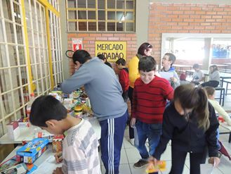 Os professores também criaram na escola o "MERCADO CIDADÃO", onde os alunos puderam aprender um pouco mais sobre o sistema monetário e como é efetivada a compra e venda de mercadorias.