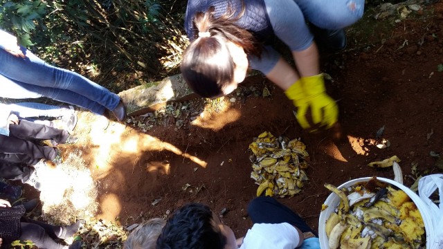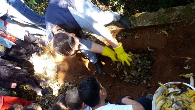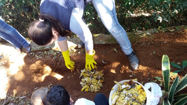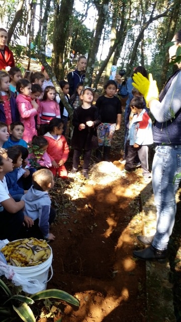 Além disto, foi mostrado aos alunos como que o lixo orgânico, através da compostagem, pode virar adubo para o plantio das plantas,