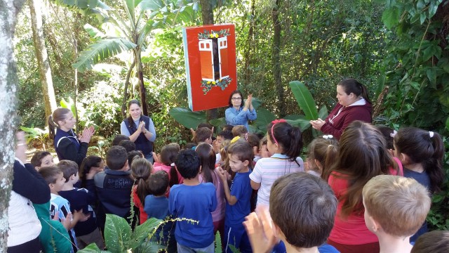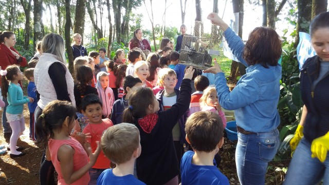 Na semana que passou, professores e alunos da Escola de Educação Infantil Pedacinho do Céu, juntamente com turmas das escolas Municipal Afonso Balestrin e Estadual José Zanatta, fizeram mais uma ação do projeto: trilha ecológica na mata que fica em frente a escola.