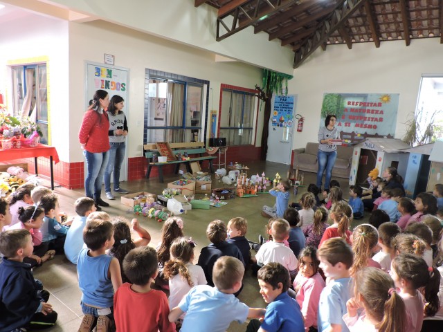 A culminância do projeto aconteceu com a entrega de brinquedos confeccionados pelas responsáveis do setor de meio ambiente, Débora Zamban e Loiva Somavilla Piovesan, a partir do lixo reciclado trazido pelos alunos como parte da ação do projeto.