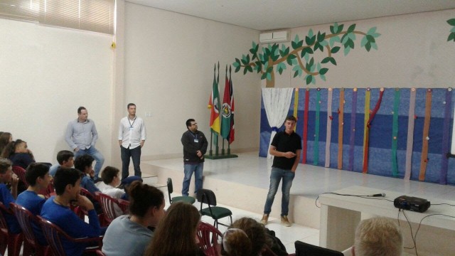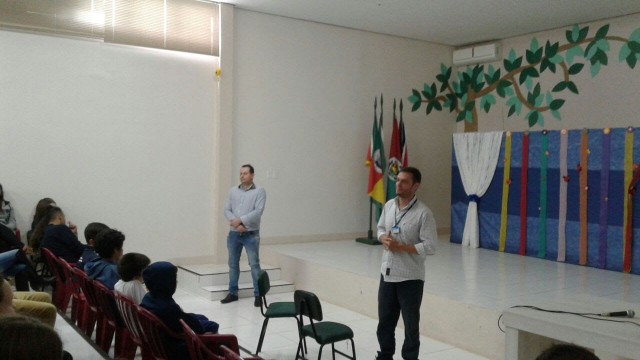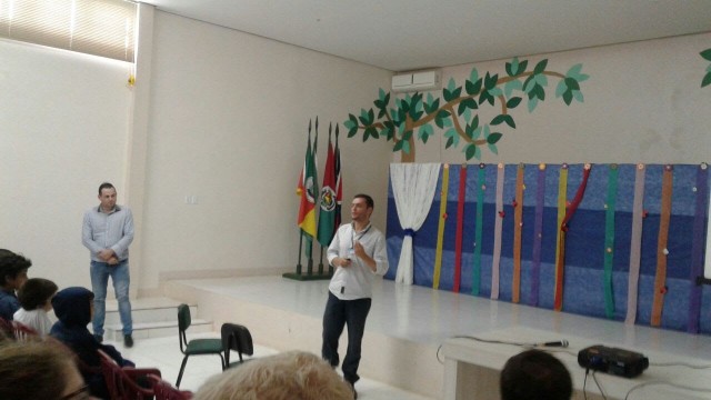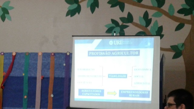 A palestra, que aconteceu no dia 10 de novembro, teve a participação da URI – Universidade Regional Integrada do Alto Uruguai e das Missões, através de professores do Departamento de Ciências Agrárias. Os professores dialogaram com a comunidade escolar sobre a importância do agricultor na produção de alimentos, e aproveitaram para apresentar a dinâmica do Curso Superior de Tecnologia em Agropecuária, curso que tem a parceria da Prefeitura Municipal de Taquaruçu do Sul, através do Programa de Educação no Meio Rural.