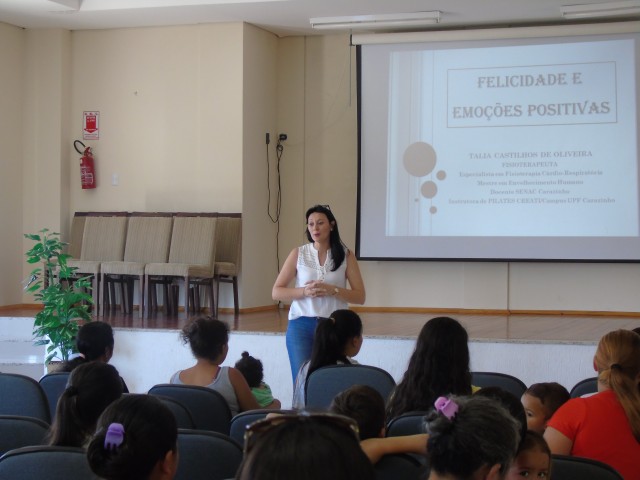 Na oportunidade esteve presente Talia Castilhos de Oliveira Graduada em Fisioterapia pela FEEVALE, Pós-Graduada em Fisioterapia Cárdio-Respiratória pela GAMA FILHO. Mestre em Envelhecimento Humano pela UPF (Universidade de Passo Fundo). Atualmente é Instrutora da oficina de Pilates no CREATI (Centro de Referência e Atenção ao idoso), no campus UPF de Carazinho, Formação em Coaching pelo IBC e Docente do SENAC de Carazinho, onde abordou brilhantemente aos participantes sobre “Felicidades e Emoções Positivas”.