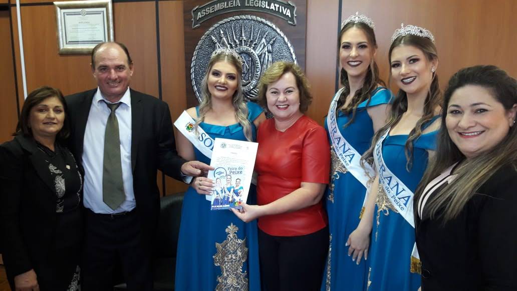 Nos dias 19 e 20 de março estiveram em Porto Alegre para a divulgação da13ª Feira do Peixe o Prefeito Municipal Sr. Valmir Luiz Menegat, acompanhado da Primeira Dama Srª Ana Arlei Menegat, da Secretária Municipal de Coordenação e Planejamento Srª Sirlei de Azevedo Canci e das Soberanas Amanda Balestrin, Giovana Zancan e Tamires Gambin.Na oportunidade visitaram diversas Secretarias de Estado, Departamentos e outros Órgãos Estaduais, além de Deputados.