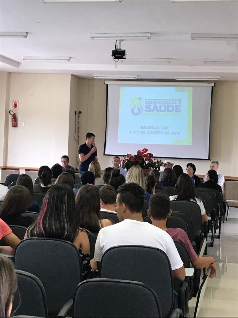 Por meio de uma palestra ministrada pelo assessor e consultor do SUS Srº Olmir Meneghetti, com base em documento orientador do Ministério da Saúde, abordou o tema central da conferência, Democracia e Saúde, e seus eixos temáticos Saúde como Direito, Consolidação dos Princípios do Sistema Único de Saúde (SUS) e Financiamento do SUS.