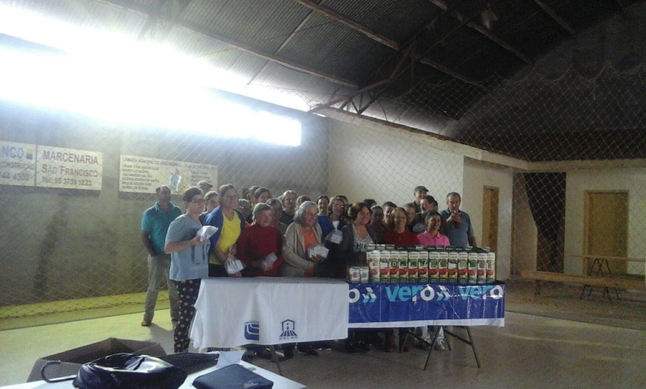 Nesta oportunidade estão sendo entregues também kits de sementes crioulas, as quais são destinadas a todas as famílias do município e são oriundas do Projeto Sementes Crioulas, em parceria com o Banrisul.