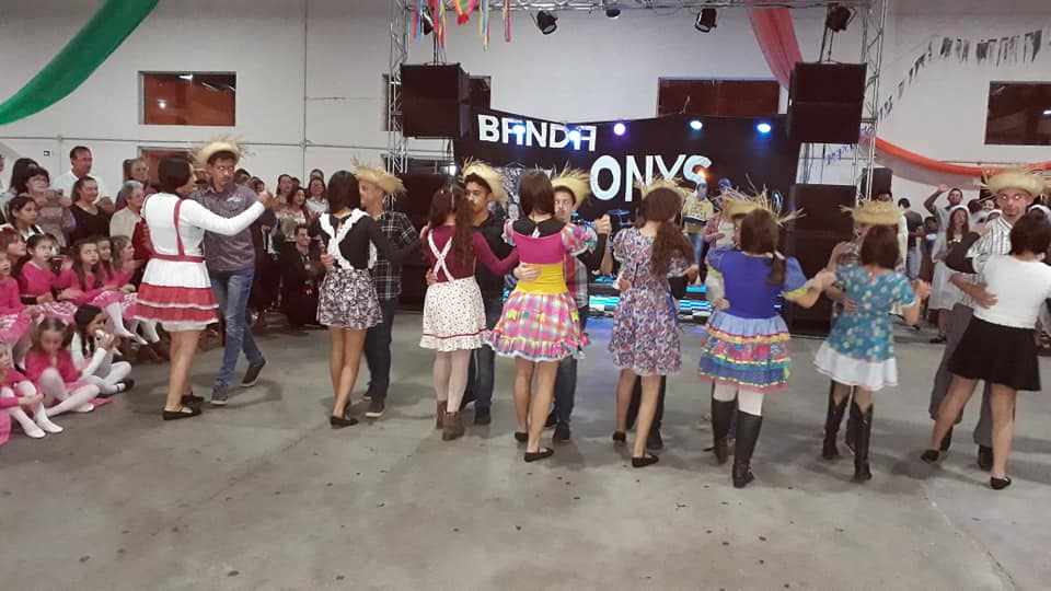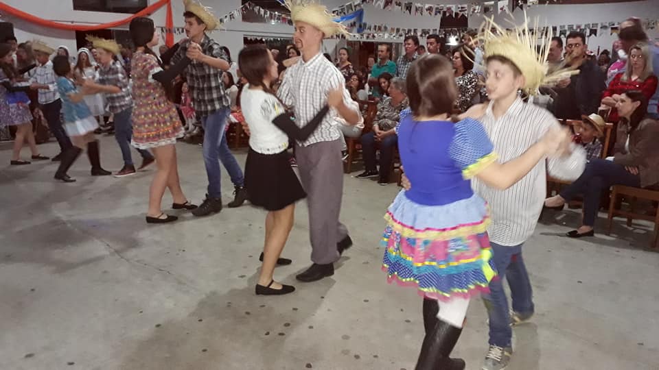 É uma noite de confraternização com apresentações, comidas típicas, dança e muita animação.