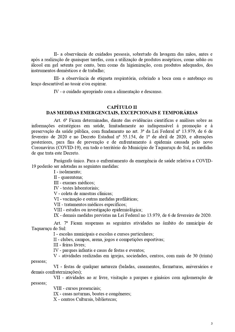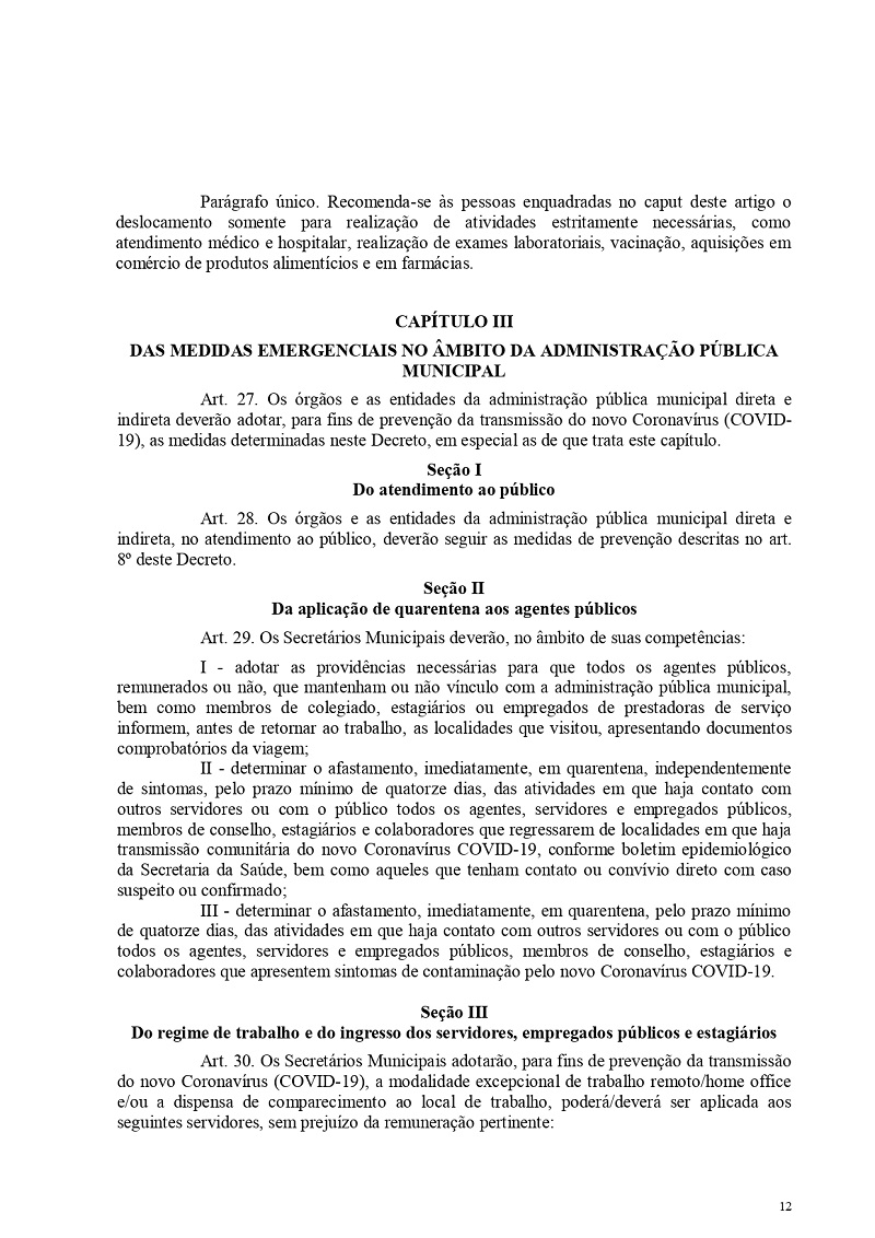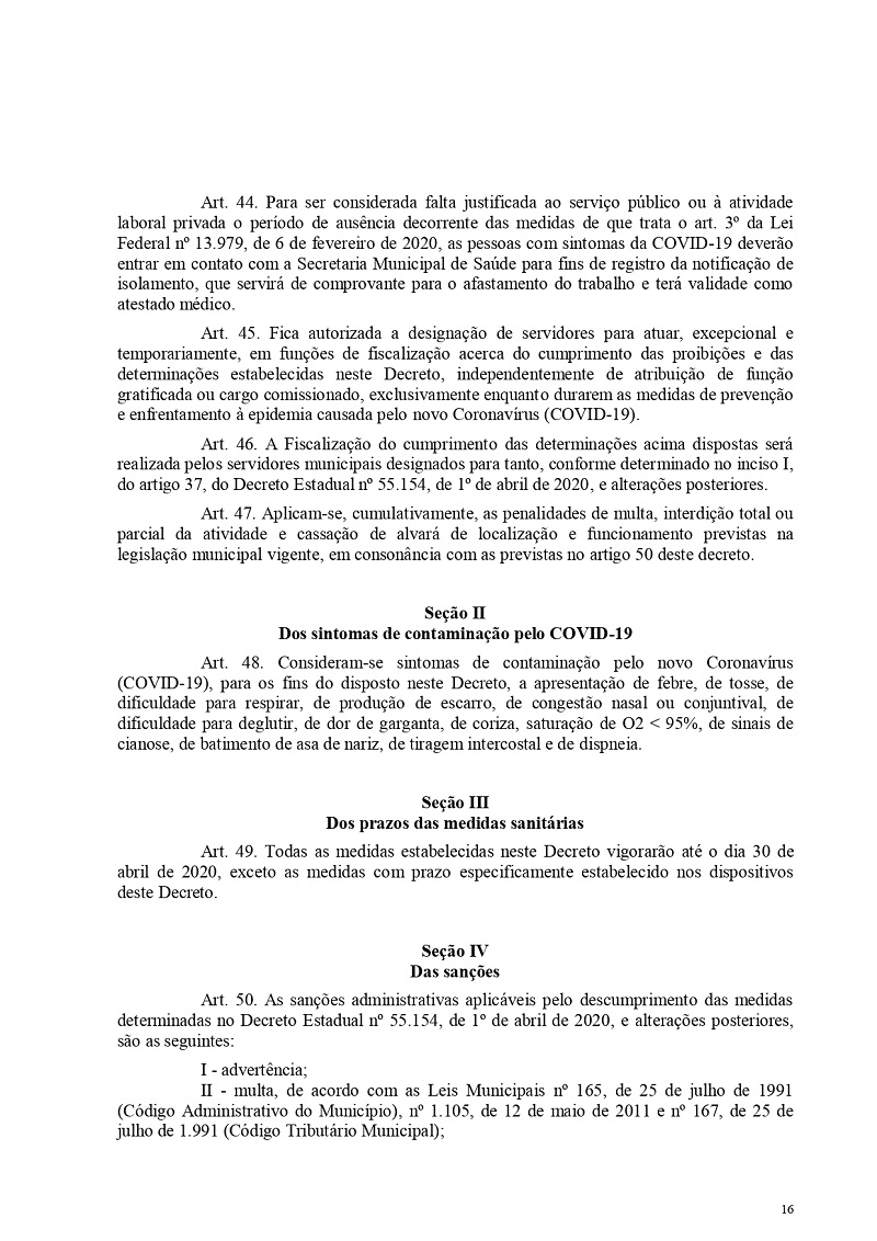 Este Decreto Municipal é válido até 30 de abril, podendo sofrer alterações a qualquer momento.