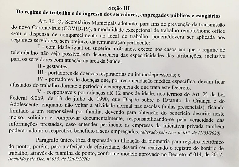 O prefeito Valmir Luiz Menegat, assinou na manhã desta quarta-feira, 13, o Decreto Municipal Nº35. O decreto consiste na flexibilização dos horários dos servidores públicos responsáveis por crianças menores de 12 anos que estão matriculados na rede de ensino de Taquaruçu e demais municípios da região - creche, municipal e estadual sem prejuízo financeiro. A medida aplica-se enquanto as aulas não retornarem a sua normalidade. O servidor deverá fazer um requerimento, com cópia da certidão de nascimento da criança em anexo a escola que frequenta, série, dentre outras informações pertinentes.