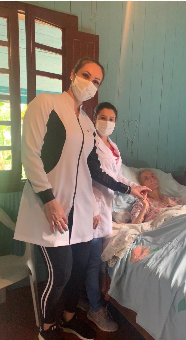 Amália Turchetto Gambin, 98 anos, uma das pessoas mais idosas do município, foi a primeira do grupo a ser vacinada.