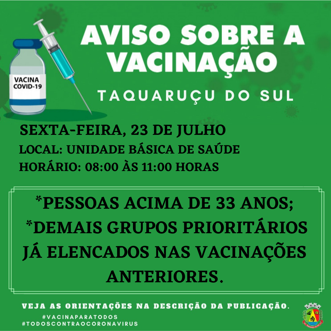 VACINAÇÃO PESSOAS ACIMA DE 33 ANOS DE IDADE